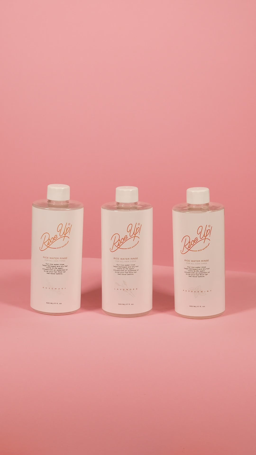 Ons rijstwater komt in 3 geuren: pepermunt, lavendel en rozemarijn.